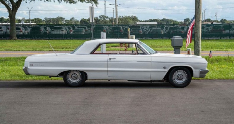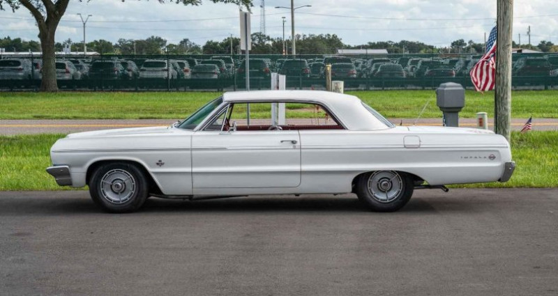 - Marque : Chevrolet - Modèle : Impala - Année : 1964 - Moteur : 409 cubic inch V8 - Puissance : 425 ch - Boîte de vitesses : 4 vitesses - Couleur extérieure : Ermine White - Couleur intérieure : Rouge - État : Survivant - Kilométrage : 25 610 miles. Provenance : Florida. Disponibilité : environ 7 semaines, clés en main. 75 000 € tout compris (importation, taxes, procédure d'immatriculation). Annonce publiée le 04/12/2025