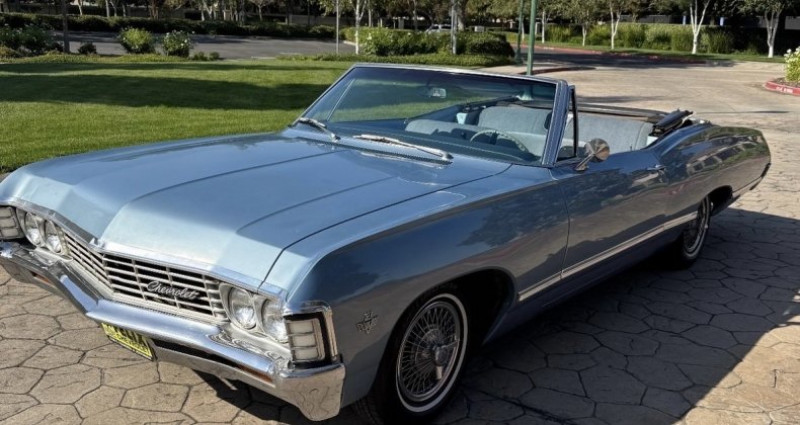 - Année : 1967 - Modèle : Chevrolet Impala - Type de carrosserie : Cabriolet - Couleur : Bleu Nantucket original - Mileage : 82 745 miles - État général : Très bon état de marche, principalement utilisé pour des promenades de fin de semaine - Moteur : 327 V8 4 Barrel Carb - Boîte de vitesses : 700r4 Automatique - Roues d'accessoires : Ailes de roue en alliage originales - Titre propre : Titre propre en main. Provenance : California. Disponibilité : environ 7 semaines, clés en main. 44 500 € tout compris (importation, taxes, procédure d'immatriculation). Annonce publiée le 05/12/2025