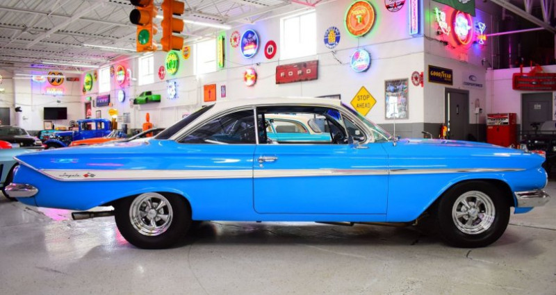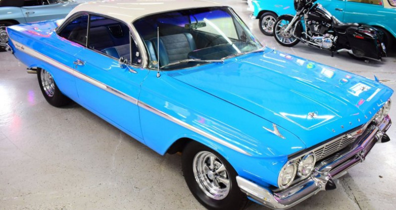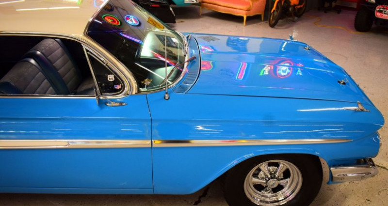 - Année : 1961 - Couleur extérieure : Bleu clair - Toit : Blanc - Transmission : Boîte manuelle à 5 vitesses - Moteur : 383 Stroker V8 - Roues : Cragar, pneus BFGoodrich Radial T/A neufs - Intérieur : Siège banquette deux tons bleu, tableau de bord original mis à jour avec des compteurs AutoMeter - Suspension : Suspension améliorée avec des bras arrière Hotchkis et des amortisseurs à réglage adjustable - Freinage : Freinage assisté, conversion freinage 4 roues disques, freinage à disques avant - Kilométrage : 5206. Provenance : Michigan. Disponibilité : environ 7 semaines, clés en main. 42 500 € tout compris (importation, taxes, procédure d'immatriculation). Annonce publiée le 10/12/2025