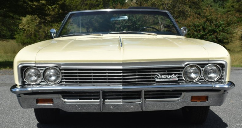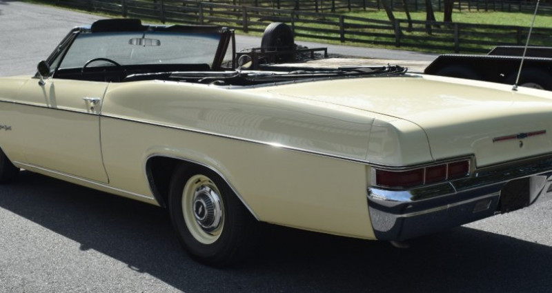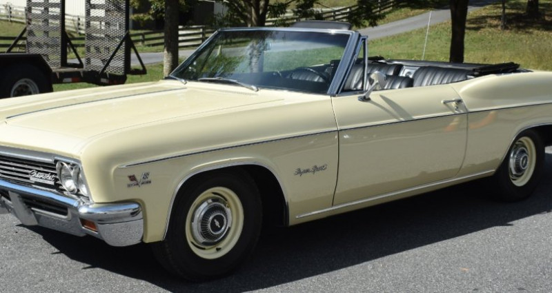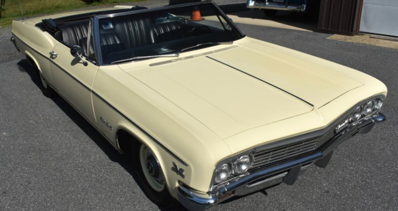- Marque : Chevrolet - Modèle : Impala SS Convertible - Année : 1966 - Moteur : Chevrolet 427 cu in ‘Big Block’ (390 chevaux) - Boîte de vitesses : 1965 Muncie M-20 wide ratio 4-speed (remplace la Power Glide 2-speed automatique originelle) - Couleur : Lemonwood Yellow - Toit : noir vinyl avec fenêtre arrière en verre - Kilométrage : 66, 971 miles (crédit à la vente) - État : Restoration frame off environ 9-10 ans ago - Options : Air Condition, Power Steering, Power Brakes, Tilt wheel, Power windows, Trunk release from glovebox, AM/FM radio, Gauge cluster, Tachometer, 12-bolt arrière différentiel avec différentiel à glissement limité 3.55 et barre de stabilisation, P215/75R/14 pneus radiaux.. Provenance : Maryland. Disponibilité : environ 7 semaines, clés en main. 72 000 € tout compris (importation, taxes, procédure d'immatriculation). Annonce publiée le 11/12/2025
