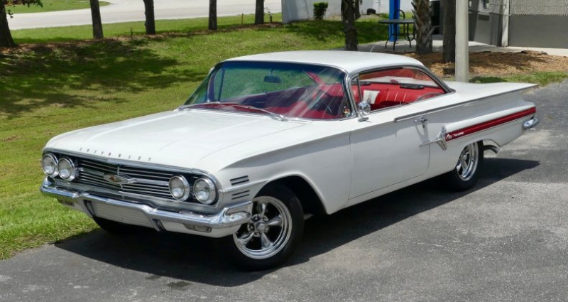 - Marque : Chevrolet - Modèle : Impala - Année : 1960 - Kilométrage : 11 000 Miles (non converti) - VIN : 01837A11016600000 - Stock : 1028-TAMPA - Couleur extérieure : Ermine White - Couleur intérieure : Rouge - Moteur : 350 CID V8 - Boîte de vitesses : 4 vitesses manuelle. Provenance : Florida. Disponibilité : environ 7 semaines, clés en main. 67 500 € tout compris (importation, taxes, procédure d'immatriculation). Annonce publiée le 13/12/2025