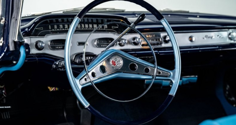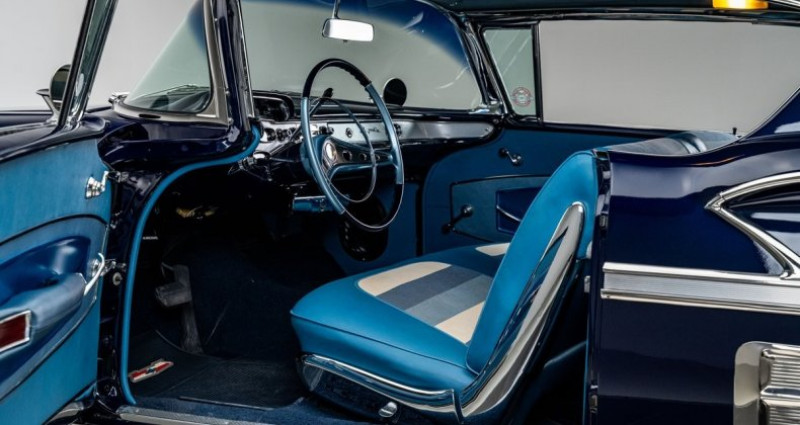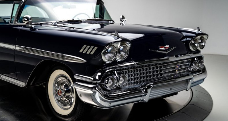 - Marque : Chevrolet - Modèle : Impala Coupe - Année : 1958 - Moteur : 348ci V8 - Boîte de vitesses : Automatique 2 vitesses - Transmission : Puissance assistée (direction, freinage) - Couleur : Daytona Blue (inspiré des Corvettes mid-year) et Blanc Arctique (toit) - État : Restauration complète (frame-off) - Kilométrage : 1 322 miles - Travaux : Restauration complète, finition, suspension coil-spring, moteur et carrosserie propre, intérieur bien conservé, détails tels que le kit continental, la conception de la prise d'air arrière sculptée et les trois feux de freinage arrière de première année.. Provenance : North Carolina. Disponibilité : environ 7 semaines, clés en main. 99 000 € tout compris (importation, taxes, procédure d'immatriculation). Annonce publiée le 13/12/2025