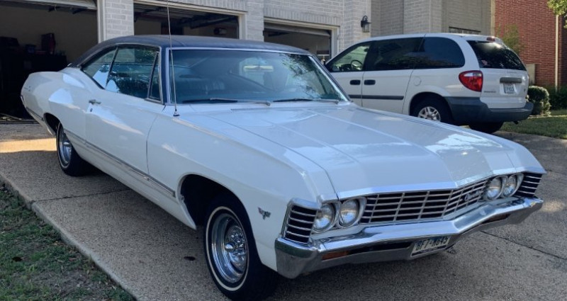 - Année : 1967 - Marque/Modèle : Chevrolet Impala SS - Type de carrosserie : 2 portes coupé - VIN : 164877T142645 - Kilométrage : 39 859 miles (original) - Moteur : 350 crate motor avec moins de 1 000 miles - Boîte de vitesses : Manuelle à 3 vitesses (original) - Intérieur : Excellent / comme neuf - État général : Très bien conservé - Titre : Titre propre Texas. Provenance : Oklahoma. Disponibilité : environ 7 semaines, clés en main. 47 000 € tout compris (importation, taxes, procédure d'immatriculation). Annonce publiée le 17/12/2025