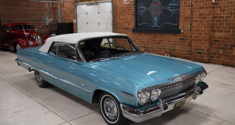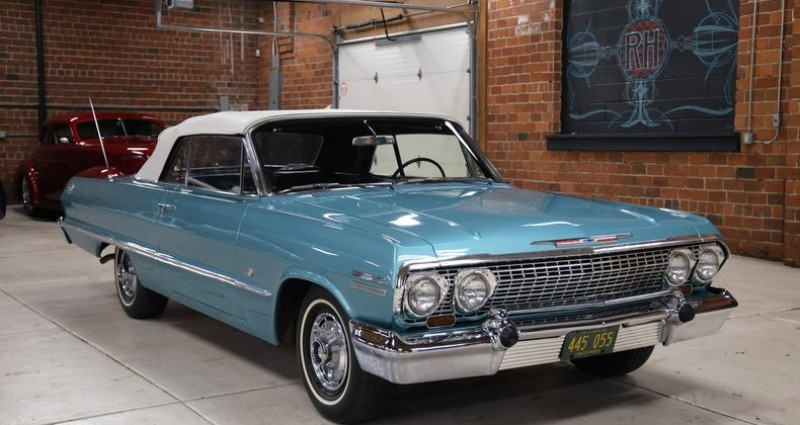 - Marque : Chevrolet - Modèle : Impala SS Convertible - Année : 1963 - Moteur : 327ci V8, 330 ch - Boîte de vitesses : Muncie M21 4-vitesse manuelle, Hurst Competition Plus shifter - Differential : GM 8.2-inch 10-bolt - Couleur extérieure : Azure Aqua Poly - Intérieur : Noir, neuf, neuf parfum - État : Restauré en détail, pas de rustes - Top : Neuf, blanc, installé lors de la restauration. Provenance : , USA. Disponibilité : environ 7 semaines, clés en main. 71 500 € tout compris (import, taxes, procédure d'immatriculation). Annonce publiée le 17/12/2025
