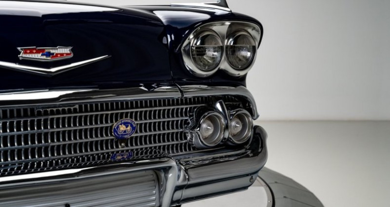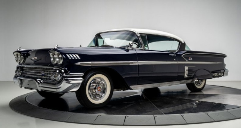 - Marque : Chevrolet - Modèle : Impala - Année : 1958 - Couleur : Daytona Blue (inspiré des Corvettes de milieu-année) et Arctic White - Type de carrosserie : Coupe - Moteur : 348ci V8 - Boîte de vitesses : Automatique Powerglide - Options : Freinage et direction assistés, échappement double, rapport de transmission 3.36 - Travaux : Restauration complète à cadre démonté - Kilométrage : 1 322 miles (non converti). Provenance : North Carolina. Disponibilité : environ 7 semaines, clés en main. 99 500 € tout compris (importation, taxes, procédure d'immatriculation). Annonce publiée le 20/12/2025