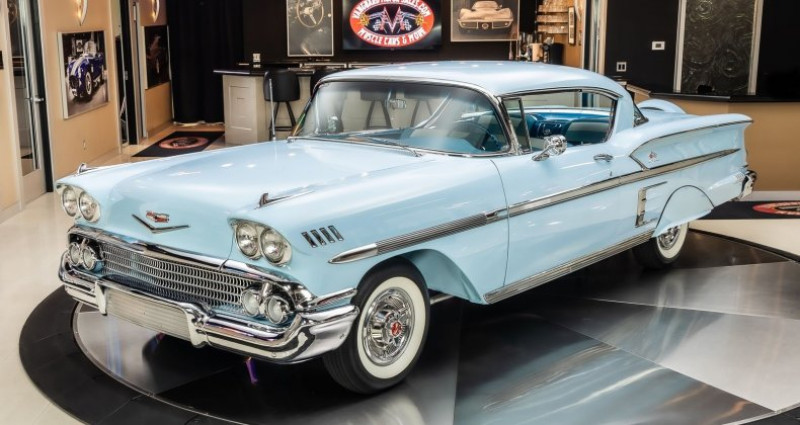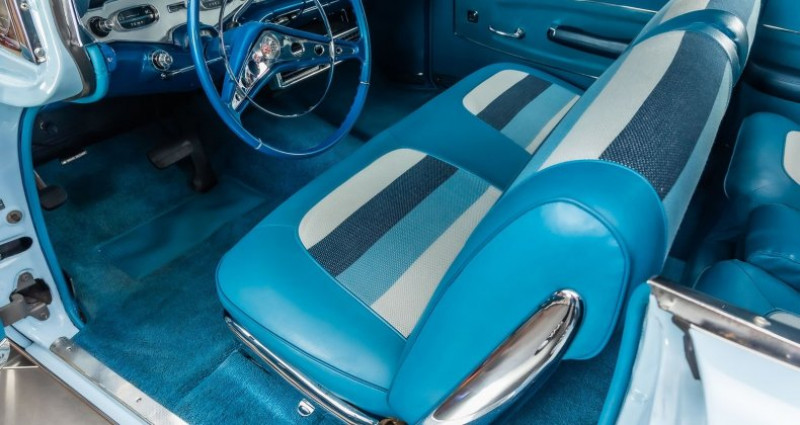 - Marque : Chevrolet - Modèle : Impala - Année : 1958 - Numéro de série : F580119596 - Couleur extérieure : Bleu - Couleur intérieure : Bleu - Kilométrage : 10 505 miles - Moteur : 348ci V8 - Boîte de vitesses : 2 vitesses automatique Powerglide - Transmission : Spec Powerglide - Options : double bench siège, volant de série, colonne de vitesses, tableau de bord de série, climatisation après-marché, fenêtres électriques, fender skirts, continental kit, double échappement, roues à rayons avec pneumatiques blancs en caoutchouc, suspensions à ressorts hélicoïdaux - État : restauré complètement, sans frais épargnés, après-restauration - Condition de la carrosserie : corps bleu, kit continental, skirts de flancs de carrosserie - Condition de l'intérieur : restauré avec soin, intérieur bleu à trois tons, sièges bancs doubles, volant de série, tableau de bord de série, colonne de vitesses, climatisation après-marché, fenêtres électriques. Provenance : Michigan. Disponibilité : environ 7 semaines, clés en main. 126 500 € tout compris (importation, taxes, procédure d'immatriculation). Annonce publiée le 22/12/2025