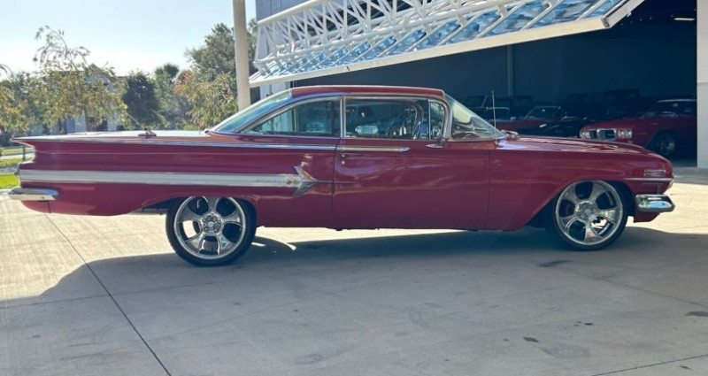 - Marque : Chevrolet - Modèle : Impala - Année : 1960 - Type de carrosserie : Wagon - Couleur extérieure : Rouge - Couleur intérieure : Rouge - Moteur : 348 V8 - Transmission : Automatique - Kilométrage : 39 150 - Suspension : Modifiée avec Air Ride - Jantes : 5-spoke polies avec pneus Red Line - Intérieur : Nouveau et restauré avec air conditioning réparé, volant rouge personnalisé et tableau de bord sportif - Extérieur : Peinture rouge/blanche à deux tons, toit bulle, ailes arrière massives, triple feux arrière, pare-chocs chromés - Moteur : 348 cubic Inch avec bloc et têtes peints en orange, carburateurs Edelbrock double 4-barrel, intake poli, couvre-têtes de soupapes polies et inscrits Chevrolet - Transmission : Automatique. Provenance : Florida. Disponibilité : environ 7 semaines, clés en main. 71 000 € tout compris (importation, taxes, procédure d'immatriculation). Annonce publiée le 23/12/2025