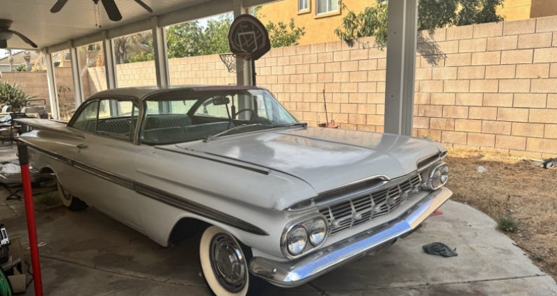 - Année : 1959 - Modèle : Chevrolet Impala - Type de carrosserie : Hardtop - Couleur : Gris - État : Drivable - Kilométrage : 19 580 miles - Titre propre : Oui - Propriétaire actuel : 5 ans - Travaux : Aucun mentionné - Dépôts réimbursables : Oui. Provenance : California. Disponibilité : environ 7 semaines, clés en main. 43 500 € tout compris (importation, taxes, procédure d'immatriculation). Annonce publiée le 26/12/2025