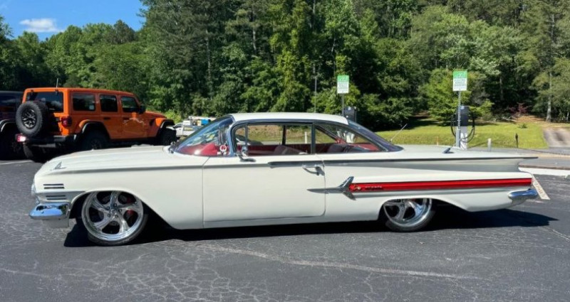 - Marque : Chevrolet - Modèle : Impala Supercharged - Année : 1960 - Moteur : 416? stroker LS - Superchargeur : Magnuson - Couleur extérieure : Blanche - Couleur intérieure : Rouge - Boîte de vitesses : 4L80E Gearstar - Suspension : Air ride technologies one touch - Roues : Billet Specialties (9 arrière). Provenance : Georgia. Disponibilité : environ 7 semaines, clés en main. 116 500 € tout compris (importation, taxes, procédure d'immatriculation). Annonce publiée le 26/12/2025