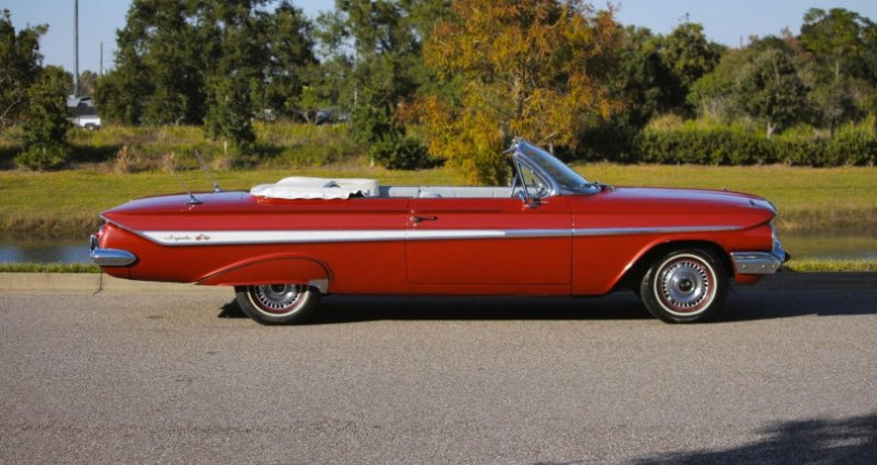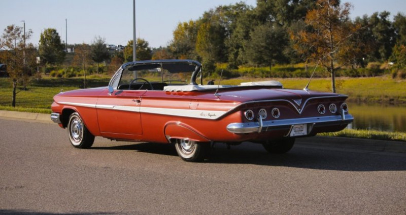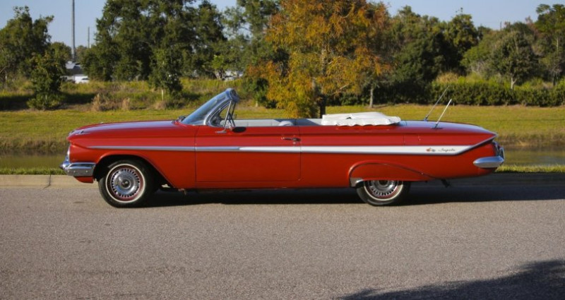 - Marque : Chevrolet - Modèle : Impala - Année : 1961 - Type : Cabriolet - Couleur extérieure : Honduras Marron - Couleur intérieure : Gris - Transmission : Automatique - Boîte de vitesses : 2-vitesse Powerglide - Moteur : 283 V8 original - Kilométrage : 46 750 - État : Bien conservé, longue propriété unique - Travaux récents : Ceramic coating extérieur, fonctionnement radio intérieur - Options : Antenne arrière, garde-boue avant et arrière, jantes correctes, jantes blanches de 14 pouces, skirts de flancs, pneus blancs de 14 pouces. Provenance : Florida. Disponibilité : environ 7 semaines, clés en main. 108 500 € tout compris (importation, taxes, procédure d'immatriculation). Annonce publiée le 31/12/2025