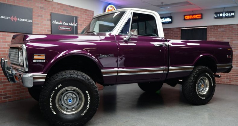 Informations fournies par le vendeur : 1972 Chevrolet K10 Custom Deluxe 4x4 short bed, Stock #: CCA0529, Exterior Color: Brandywine, Interior Color: Black, Body Type: Truck, Transmission: 3 Speed Automatic, Engine: 350 V8, Mileage: 29, 750, Drivetrain: 4X4, Exterior Equipment: tinted windows, dual side mirrors, sliding rear window, polished exhaust, chrome bumpers, woodgrain trim, Rhino lined bed, 15 Rally wheels with chrome rings and center caps, 35x12.50 BFGoodrich All-Terrian T/A tires (DOT 2023), 4 suspension lift, power steering, manual locking front hubs, power-assisted front disc brakes and rear drums, 350ci V8 factory rated at 175 HP and 290 lb.-ft of torque, three-speed turbo hydramatic automatic transmission, dual range transfer case, rear axle with 3.73:1 gears, Flowmaster mufflers added in 2024.. Provenance : Arizona. Disponibilité : environ 7 semaines, clés en main. 68 500 € tout compris (importation, taxes, procédure d'immatriculation). Nous représentons les acheteurs sur le marché nord-américain et sécurisons chaque étape du processus, de la sélection à la mise en circulation. Annonce publiée le 19/11/2025