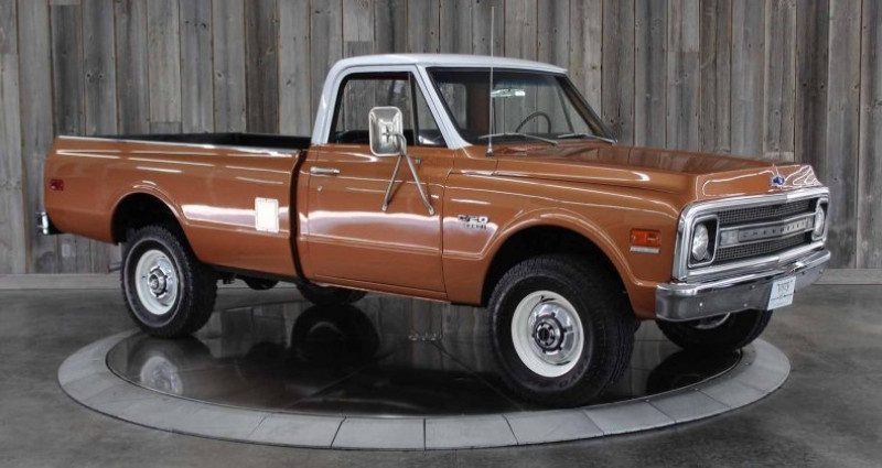 - Marque: Chevrolet - Modèle: K-20 Pickup 4X4 - Année: 1970 - Couleur extérieure: Orange - Couleur intérieure: Noir - Moteur: 8 cylindres - Boîte de vitesses: Manuelle à 4 vitesses - Transmission 4X4 - Mise à jour de la peinture extérieure ancienne - Boîte à charbon neuve - Toit peint en blanc neuf - Lit de charge en bois solide neuf, triple-coloré et quadruple-endu (sandé entre chaque application) - Connecteurs et matériel de lit de charge en acier inoxydable neuf - Lit de charge recouvert d'un revêtement de lit de charge en inox - Manifolds d'échappement originaux - Couvertures de soupapes neuves en chrome - Refonte et peinture de la zone moteur - Matelas de sol noir neuf, mat de sol personnalisé avec emblème Chevy blanc - Banquette noire belle - Plaques de sillage de porte neuves polies - Radio AM-FM neuf, haut-parleurs 6x9 de porte neufs - Volant neuf - Commandes de frein de remorque montées sur le tableau de bord - Système de carburant entièrement nettoyé, réaménagé et refinie, y compris les deux réservoirs de carburant - Système d'alimentation en carburant entièrement remplacé avec des portes de carburant neuves en inox et matériel d'inox - Nouveau pare-brise, Nouveaux amortisseurs Skyjacker, y compris le stabilisateur de direction et le boitier de direction installés - Échappement double avec silencieux Flowmaster, bumper avant neuf, bumper arrière ancien mais encore bien conservé avec remorqueur après-vente, qui est également branché - Jantes refinies dans la couleur de la peinture de la factory - Nouveau ruban de porte, ruban de fenêtre et garniture de fenêtre - Nettoyage, ébullition et répaintage de la partie inférieure - Toutes les lampes, y compris les lampes de recul, fonctionnent comme il faut - La voiture court très bien, a beaucoup de puissance et est excellente pour la remorquage, la montée ou simplement la conduite. Elle fera le travail que vous voulez qu'elle fasse et elle le fera avec style.. Provenance : Iowa. Disponibilité : environ 7 semaines, clés en main. 50 000 € tout compris (importation, taxes, procédure d'immatriculation). Annonce publiée le 06/12/2025