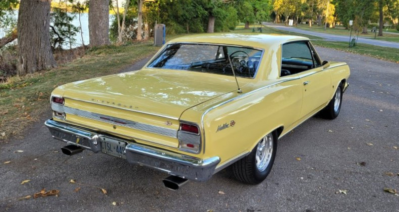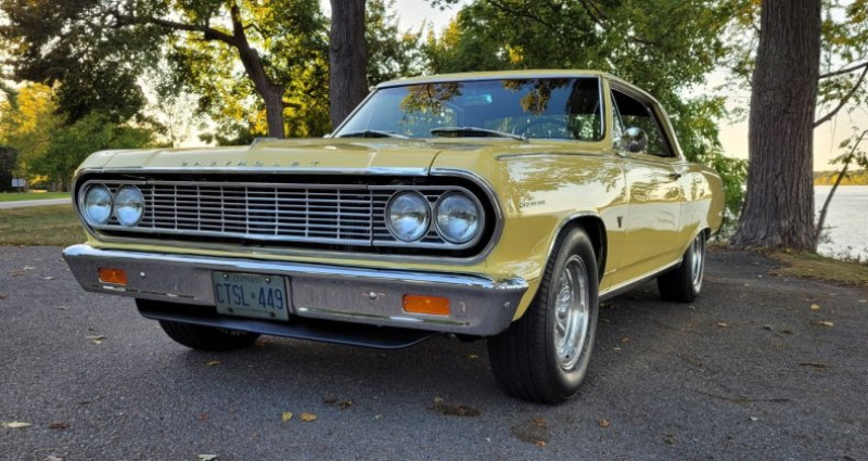 Cet ancien 1964 Chevelle Malibu SS a subi une restauration complète d'ossature entière par rotisserie, avec un revêtement en or jaune et une cabine noire. Le moteur V8 de 327 cubic inches est équipé d'un système d'injection d'essence Holley Sniper. Il est doté d'un système de suspension double réglable QA1 à huit points de contrôle et d'une transmission Powerglide. Il dispose également d'un système d'air conditionné neuf, d'une direction et freinage assistés, d'une boîte à air avec réservoir supplémentaire, d'une transmission de puissance plus grande et de freins à disques aux avants. L'entraînement à l'arrière se fait via un différentiel à 10 roues, avec une rapport de 3, 73. Les roues sont des American Racing Torq Thrust II et les pneus sont des Mickey Thompson Sportsman S/T. Les éléments de suspension ont été améliorés avec des joints de suspension élevés et un ressort antiroulis arrière. Les sorties d'échappement en acier inoxydable doubles (x-pipe) avec des coupe-feux facultatifs ont été ajoutés. La peinture est en excellente condition, avec quelques petites imperfections visibles sur les photos. Les avertisseurs de vitesse et les haut-parleurs ont été remplacés par des Autometer et des Pioneer.. Ce descriptif est basé sur les éléments communiqués par le propriétaire avec un traitement assisté. Merci pour votre indulgence en cas de formulation perfectible. Provenance : Ontario. Disponibilité : 7 semaines, clés en main. 50 500 € tout compris (importation, taxes, procédure d'immatriculation). Annonce publiée le 02/10/2025