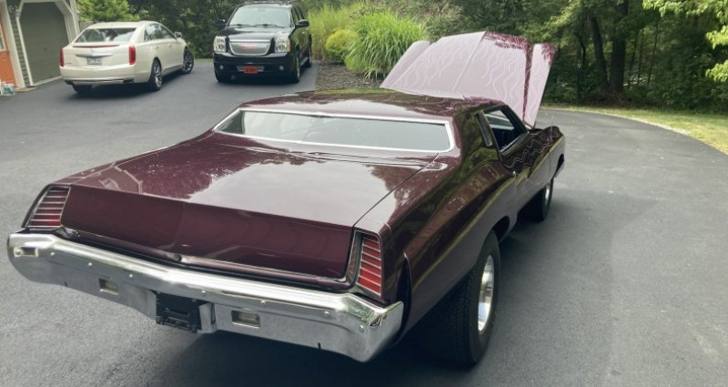 1973 Monte Carlo Chop Top Hot Rod, custom rear wide body, 10 wide wheels, 7 1/2 inches roof chop, laquer paint from 1985, 350 engine built by a local engine builder, runs and drives well, needs door glass and interior work, driver seat bolster is split, US mags wheels.. Provenance : Massachusetts. Disponibilité : environ 7 semaines, clés en main. 22 000 € tout compris (importation, taxes, procédure d'immatriculation). Annonce publiée le 27/11/2025