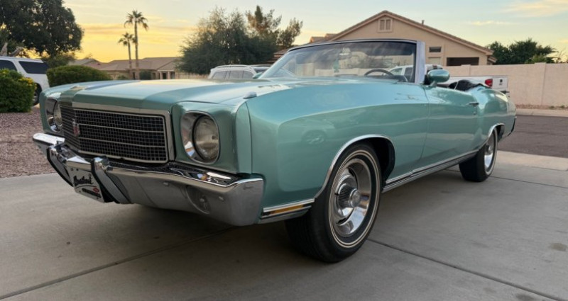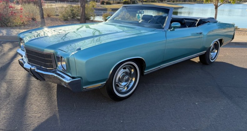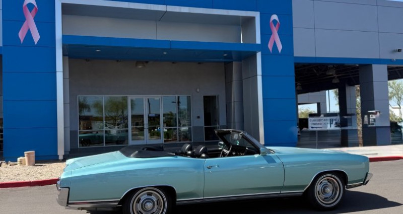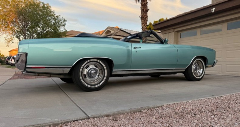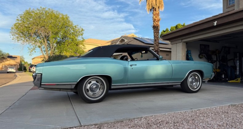 - Couleur : Turquoise pâle misty - Moteur : 350 300HP, 4bbl Carburetor, numérique - Boîte de vitesses : Turbo 350 Automatique, numérique - Arbre de transmission arrière : 12 Bolt, Posi, 3.08 gears, numérique - Freins avant : Disques - Pneus : 15 x 7 Chevy Rally Wheels avec pneus à double bande blanche - Siège : Sièges de sport, ceintures de sécurité arrière, ceintures de sécurité de couleur noire - Toit : Toit convertible électrique, avec verre arrière, ouverture automatique du coffre - Équipement : Climatisation, freins à main, freins à pied, direction à pompe, freinage assisté, verrouillage centralisé, ouverture automatique du coffre, fenêtres électriques, rétroviseurs, visières avec miroirs, support de ceinture de ceinture de sécurité, boîte de rangement pour le manche de vitesse, compressor de chocs air, support de charge de la boîte de vitesse de console, bande son AM 8 Track, garde-bougies avant et arrière, garde-boucliers latéraux, rideaux soleil, support de tasse, ajustement de la direction, ouverture automatique du coffre du gant - Kilométrage : 55 500 miles (environ). Provenance : Arizona. Disponibilité : environ 7 semaines, clés en main. 72 500 € tout compris (importation, taxes, procédure d'immatriculation). Annonce publiée le 06/12/2025