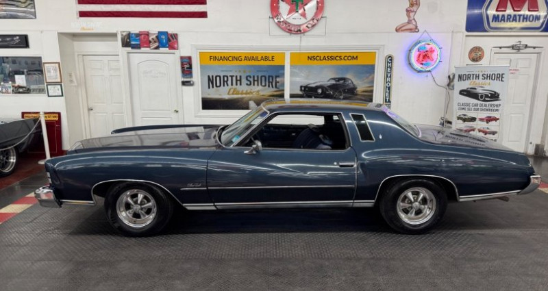 - Marque : Chevrolet - Modèle : Monte Carlo - Année : 1973 - Couleur extérieure : Blue métallisé - Couleur intérieure : Blue - Moteur : 350 C.I. - Boîte de vitesses : Automatique - Freinage : Pneumatique (disques avant, tambours arrière) - Equipement : Air conditionné, double échappement, freinage assisté, roues Cragar SS chrome - Kilométrage : 89 764 - État général : Solide et propre - Frame et plancher : Solides - Transport possible à l'échelle mondiale - Vendeur : North Shore Classics (847-393-7887). Provenance : Illinois. Disponibilité : environ 7 semaines, clés en main. 22 500 € tout compris (importation, taxes, procédure d'immatriculation). Annonce publiée le 08/12/2025