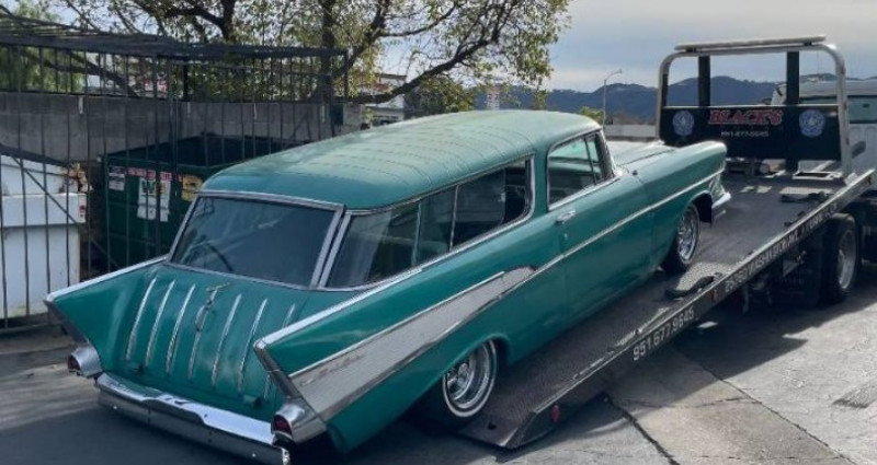 Ce 1957 Chevrolet Nomad est en train de se transformer en véritable pièce majeure de la collection. Le travail lourd a déjà été effectué, laissant à l'acheteur la liberté de personnaliser le véhicule selon ses goûts et d'en profiter. Le moteur et la suspension ont été améliorés avec l'installation d'un moteur LS1 5.7L V8, des échappements en chrome, des spindles antérieurs CPP et une conversion de freins à disque antérieurs. Le véhicule dispose également de barres de soufflage fraîchement chromées pour l'avant et l'arrière, ainsi que de nouvelles pneus montés sur des roues originales Rocket. Le corps est solide et d'excellente qualité, avec des lignes de Nomad classique et beaucoup de lustre. Cependant, le véhicule nécessite encore une jointure d'essieu et un pare-brise. Ce 1957 Chevrolet Nomad est une rare opportunité de posséder l'un des wagons les plus iconiques jamais fabriqués aux États-Unis, déjà équipé d'un moteur LS1 V8 modernisé, de la chromure et de freins à disque. Achevant les mécaniques, vous pouvez conduire une classe immortelle avec un vrai pouvoir et un style impeccable. Le titre de ce véhicule est propre et prêt pour la prochaine étape de sa vie. Veuillez noter que l'emplacement du véhicule est à la maison de notre client et pas à Cadillac, Michigan. Nous avons également un showroom avec environ 25 voitures qui sont disponibles uniquement par rendez-vous. N'hésitez pas à nous contacter pour en discuter avec un de nos représentants à 231-468-2809 EXT 1.. Provenance : , USA. Disponibilité : 7 semaines, clés en main. 55 000 € tout compris (import, taxes, procédure d'immatriculation). Annonce publiée le 12/11/2025
