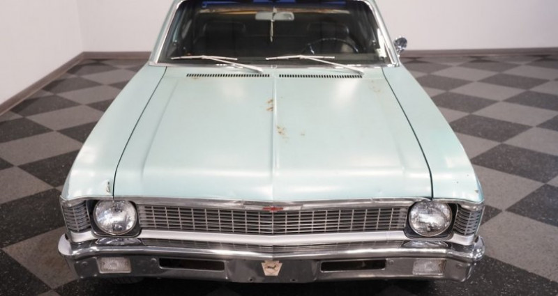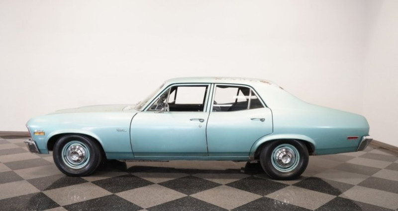 Ce 1970 Chevrolet Nova est un véhicule d'époque qui offre une expérience de conduite authentiquement américaine, comme il était à l'époque. Equipé d'un moteur six cylindres en ligne, d'une boîte automatique à trois vitesses et d'une apparence originale à l'extérieur comme à l'intérieur, ce Nova attend un nouveau propriétaire pour l'exploiter tel quel ou pour le personnaliser.Le moteur est un six cylindres en ligne de 250 CI, la boîte de vitesses est une boîte automatique à trois vitesses (TH250) équipée d'un carburateur Rochester MonoJet 1 Barrel. L'amortissement avant est indépendant avec ressorts hélicoïdaux et le suspens arrière est un essieu rigide équipé de ressorts à feuilles. Le freinage est assuré par des freins à tambour. La voiture est peinte en turquoise pâle et est équipée de roues acier peintes de 14 pouces avec des caps de centre et de pneus Fuzion ST Trailer de 205/70R14. L'intérieur est en noir avec un banc avant. La voiture est également équipée d'un volant à commande de vitesse, de frein moteur, d'un radio AM et d'attaches de ceinture de sécurité.Cette voiture a été fabriquée il y a plus de cinq décennies et présente un état général d'utilisation, mais elle est à l'origine et a probablement été peinte à l'origine.. Ce descriptif est basé sur les éléments communiqués par le propriétaire avec un traitement assisté. Merci pour votre indulgence en cas de formulation perfectible. Provenance : Arizona. Disponibilité : 7 semaines, clés en main. 19 500 € tout compris (importation, taxes, procédure d'immatriculation). Annonce publiée le 16/10/2025