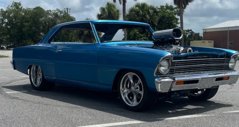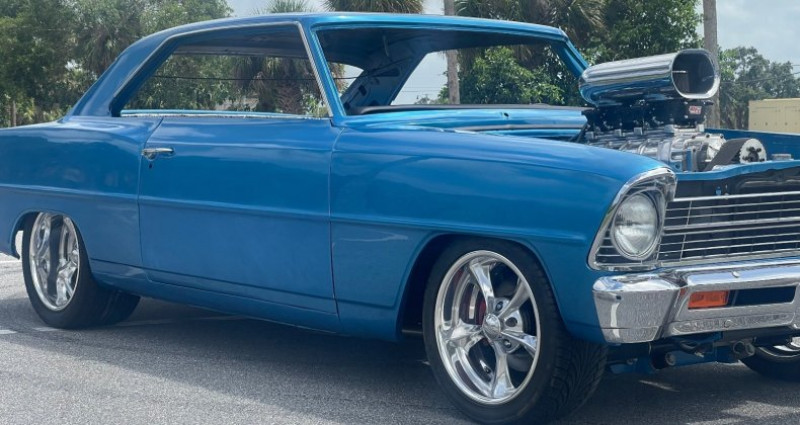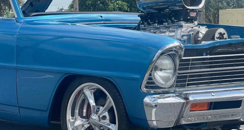 - Marque : Chevrolet - Modèle : Nova - Année : 1967 - Couleur : Marina blue - Moteur : 350 Chevy crate - Boîte de vitesses : 700R4 - Transmission : 671 blower, 650 carburateurs - Suspension : TCI front sub frame, TCI rear 4 link - Freins : 4 roues à disques - Roues : Billet Specialties, 17x8 (avant) et 17x10 (arrière). Provenance : Florida. Disponibilité : environ 7 semaines, clés en main. 77 000 € tout compris (importation, taxes, procédure d'immatriculation). Annonce publiée le 05/12/2025