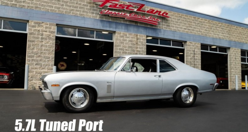 - Marque : Chevrolet - Modèle : Nova - Année : 1970 - Couleur extérieure : Silver - Couleur intérieure : Noir - Type de carrosserie : Hardtop - Transmission : Automatique (4L60E) - Moteur : 350 5.7 Tuned Port Injection - Kilométrage : 15 070 - Roues : 15 Rally wheels. Provenance : Missouri. Disponibilité : environ 7 semaines, clés en main. 39 000 € tout compris (importation, taxes, procédure d'immatriculation). Annonce publiée le 06/12/2025