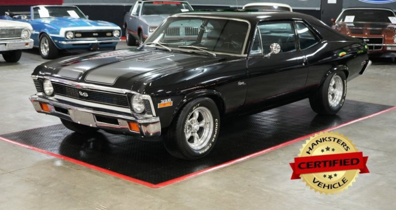 - Marque : Chevrolet - Modèle : Nova SS - Année : 1972 - Couleur extérieure : Noir - Couleur intérieure : Noir - Type de carrosserie : Coupé - Transmission : GM TH350 Automatique - Moteur : 402cid Big Block Chevrolet - Drivetrain : RWD - Pneus : Cooper Cobra Raised White Letter Tires sur des roues American Racing de 15 - Performance : Brawler double pumper 4-barrel carburetor, HEI distributor, Edlebrock performer 2.0 intake manifold - Garantie : 3 mois / 3 000 miles (seulement sur certains véhicules achetés à prix de détail chez Hanksters Hot Rods). Provenance : Pennsylvania. Disponibilité : environ 7 semaines, clés en main. 52 500 € tout compris (importation, taxes, procédure d'immatriculation). Annonce publiée le 11/12/2025
