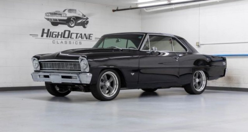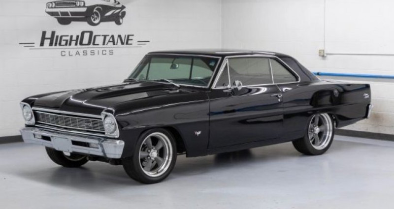 - Marque : Chevrolet - Modèle : Nova - Année : 1966 - Couleur extérieure : Noir - Couleur intérieure : Noir - Type de carrosserie : Coupe - Transmission : Boîte manuelle à 4 vitesses - Propulsion : RWD (Propulsion arrière) - Moteur : 350ci V8 - Suspension : Coil-over, rack and pinion direction, four-link arrière - Pneus : American Racing Torq Thrust - Freins : Wilwood disc brakes. Provenance : Massachusetts. Disponibilité : environ 7 semaines, clés en main. 61 500 € tout compris (importation, taxes, procédure d'immatriculation). Annonce publiée le 13/12/2025