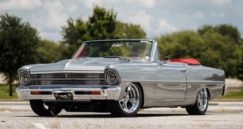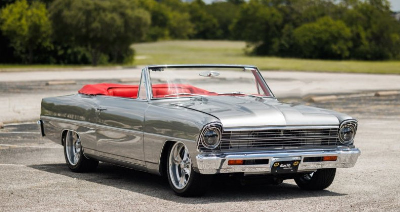 - Marque : Chevrolet - Modèle : Chevy II Nova - Type : Convertible Restomod - Année : 1967 - Couleur extérieure : Silver / Noir - Couleur intérieure : Rouge - Moteur : GM LS V8 - Boîte de vitesses : Automatique 4L60 - Suspension avant : Suspension améliorée - Roues : 17 Billet Specialties - Kilométrage : 985 miles (1 585 km) - Toit : Toit noir convertible en bon état - Intérieur : Cuir rafraîchi récemment - Climatisation : Vintage Air A/C - Freins : Freins avant à disque puissants - Radiateur : Radiateur 4-noyeau aluminium - Autres équipements : Radio Kenwood cachée dans le coffre, système audio personnalisé, etc.. Provenance : Texas. Disponibilité : environ 7 semaines, clés en main. 75 500 € tout compris (importation, taxes, procédure d'immatriculation). Annonce publiée le 13/12/2025