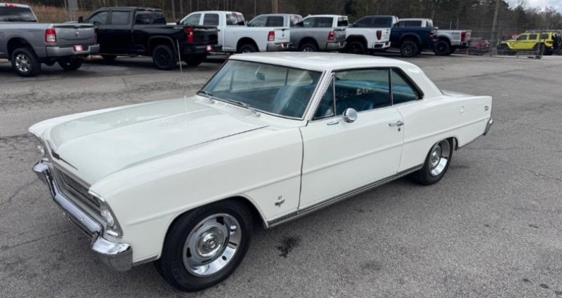 - Marque : Chevrolet - Modèle : Nova - Année : 1966 - Moteur : L79 ZI block 327 - Puissance : 350 HP - Boîte de vitesses : 4 vitesses manuelle - Couleur extérieure : Blanche - Couleur intérieure : Bleue - État : 0 rust, tout fonctionne - Documentation : Original Sales Invoice, Original check for down payment, Finance papers, Original owner's manual, etc.. Provenance : Georgia. Disponibilité : environ 7 semaines, clés en main. 80 000 € tout compris (importation, taxes, procédure d'immatriculation). Annonce publiée le 16/12/2025