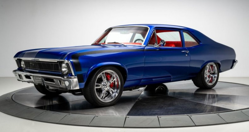 - Marque : Chevrolet - Modèle : Nova - Année : 1971 - Couleur extérieure : Blue Heaven - Couleur intérieure : Rouge - Type de carrosserie : Coupe - Moteur : 6.0L V8 LS - Boîte de vitesses : 5 vitesses manuelle - Kilométrage : 1 106 miles - Pneus : 18 pouces Schott MOD5 ExL avec Yokohama Advan Sport (255mm avant, 295mm arrière). Provenance : North Carolina. Disponibilité : environ 7 semaines, clés en main. 99 000 € tout compris (importation, taxes, procédure d'immatriculation). Annonce publiée le 17/12/2025