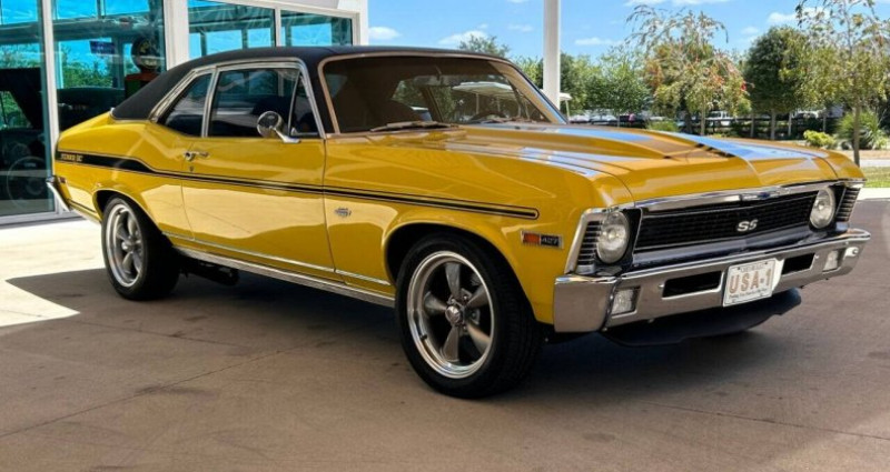- Marque : Chevrolet - Modèle : Nova - Année : 1972 - Type : Wagon - Couleur extérieure : Jaune - Couleur intérieure : Noir - Moteur : 427 V8 - Boîte de vitesses : 700R4 Automatique - Transmission : Rear-wheel drive - Kilométrage : 75, 777 miles - Travaux : Restoration complète 2 ans auparavant - Options : Système d'allumage MSD, système de freinage à 4 disques, suspensions améliorées, système audio personnalisé, volant SS, toit noir vinyle, roues REV custom 17 pouces, peinture extérieure jaune avec graphiques Yenko noirs, sièges de cuir noirs en double siège, levier de vitesses Hurst de type course, système de freinage GM 12 bolt, amortisseurs avant et arrière améliorés, système d'échappement Hooker avec tuyaux et silencieux.. Provenance : Florida. Disponibilité : environ 7 semaines, clés en main. 51 500 € tout compris (importation, taxes, procédure d'immatriculation). Annonce publiée le 16/12/2025