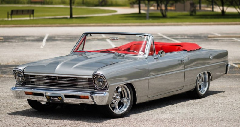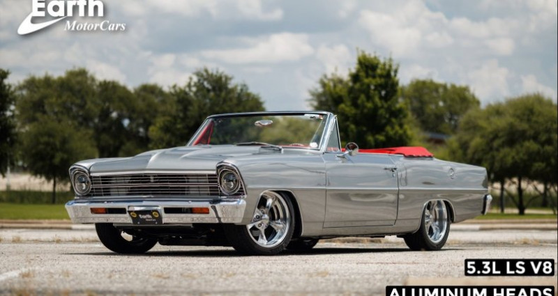 - Marque : Chevrolet - Modèle : Chevy II Nova - Type : Convertible Restomod - Année : 1967 - Couleur extérieure : Silver / Noir - Couleur intérieure : Rouge - Moteur : GM LS V8 - Boîte de vitesses : Automatique 4L60 - Suspension avant améliorée - Freins avant : ABS - Pneus : 225/45/17 - Kilométrage : 985 miles - Toit convertible noir en bon état - Intérieur rafraîchi récemment en cuir personnalisé - Climatisation Vintage Air - Système audio amélioré - Radio Kenwood cachée dans le coffre avec amplificateur dans le coffre - Système de fenêtre électrique - Radiateur en aluminium 4-cœur - Contrôleur de suspension tubulaire supérieur et inférieur - Convertisseur de courant de puissance - Refrigeration rigoureuse des véhicules classiques avant vente - Véhicule éligible pour une garantie supplémentaire (exclusions applicables). Provenance : Texas. Disponibilité : environ 7 semaines, clés en main. 79 500 € tout compris (importation, taxes, procédure d'immatriculation). Annonce publiée le 23/12/2025