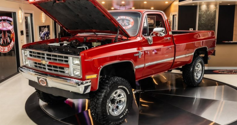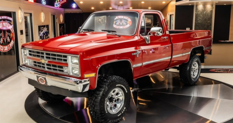 Cet 1986 Chevrolet Silverado 4X4 Pickup a été entièrement restauré en remontant le châssis, sans dépenses épargnées. Il est coloré en rouge à l'extérieur et au sol intérieur et dispose d'une suspension de remorquage de 4 pouces. Le véhicule est équipé d'un moteur V8 de 350 ci, d'une boîte de vitesses automatique 700R4 et d'un essieu arrière à 10 barres. Les équipements supplémentaires incluent des freins et direction assistés, des amortisseurs Rough Country, une évacuation arrière double, une barre anti-roulis avant, un climatiseur et des freins manuels de roues motrices. L'intérieur a été entièrement rénové et dispose d'un banquette rouge avec tableau de bord et tapis rouge et brun. Cet Silverado, avec son long carénage, est peint en rouge brillant et dispose de protection du lit par spray Line-x.. Ce descriptif est basé sur les éléments communiqués par le propriétaire avec un traitement assisté. Merci pour votre indulgence en cas de formulation perfectible. Provenance : Michigan. Disponibilité : 7 semaines, clés en main. 91 000 € tout compris (importation, taxes, procédure d'immatriculation). Annonce publiée le 17/11/2025