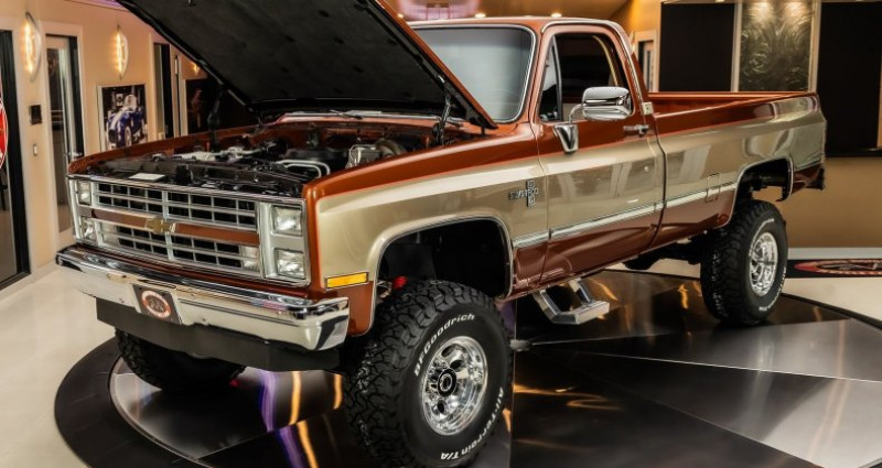 - Marque : Chevrolet - Modèle : Silverado V20 - Année : 1987 - Type de carrosserie : Pickup (4X4) - Couleur extérieure : Bronze & Gold - Couleur intérieure : Tan - Kilométrage : 17 684 miles - Moteur : 350 V8 - Boîte de vitesses : 3 vitesse automatique (TH400) - Suspension : Rough Country - Pneus : 16'' Aluminum avec BFGoodrich All-Terrain T/A Tires - Options : Air Conditioning, Power Steering, Power Brakes, Full-Size Spare Tire, Dual Headlights, Chrome Bumpers, Polished Trim, AM/FM Radio, Power Windows, Power Door Locks, Tilt Steering Column, 2-Spoke Steering Wheel, Bench Seating, Shoulder Seat Belts, Tan Cloth et Vinyl Upholstery, Tan Carpeting, Brushed Aluminum Trim, Stock Dashboard Gauges.. Provenance : Michigan. Disponibilité : environ 7 semaines, clés en main. 145 000 € tout compris (importation, taxes, procédure d'immatriculation). Annonce publiée le 16/12/2025