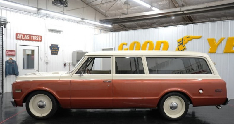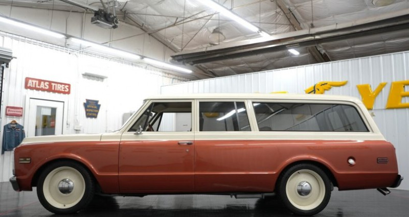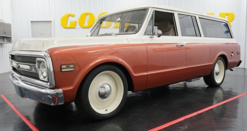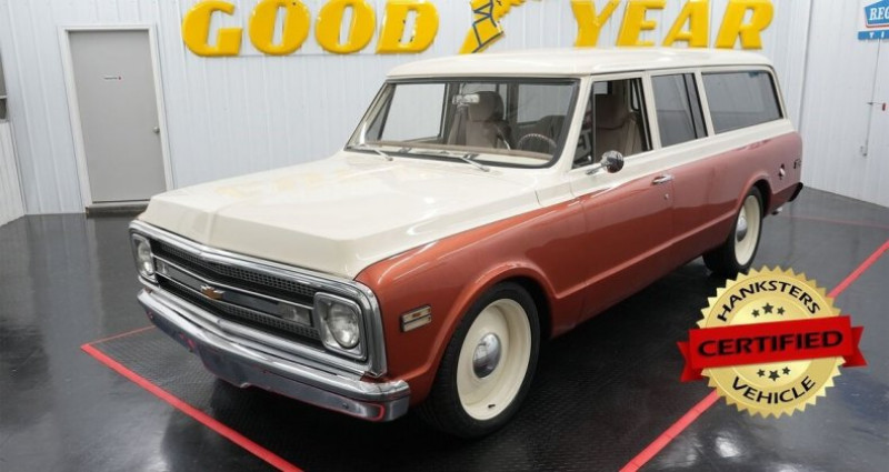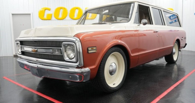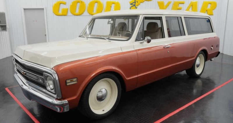 Ce 1969 Chevrolet Suburban, stock # 69SUBU3961-PA, possède une couleur extérieure bicolore crème et cuivre, avec un intérieur en beige. Il est équipé d'une transmission 700R4 automatique et d'un moteur 427cid Big Block Chevrolet. Les roues sont des Boyd Coddington 61W Smoothie. Le véhicule est équipé de freins à disque pour les quatre roues, de chocs KYB, de commande de vitesse à colonne, d'un radiateur en aluminium Alumitech, d'une boîte de vitesses à air conditionné et de nombreux autres éléments de performance. Le véhicule se trouve dans notre showroom de Pennsylvanie. Il dispose d'une garantie de trois mois et trois mille milles, offerte uniquement sur les véhicules sélectionnés auprès de Hanksters Hot Rods & Muscle Cars à la vente au détail.. Ce descriptif est basé sur les éléments communiqués par le propriétaire avec un traitement assisté. Merci pour votre indulgence en cas de formulation perfectible. Provenance : Pennsylvania. Disponibilité : 7 semaines, clés en main. 40 500 € tout compris (importation, taxes, procédure d'immatriculation). Annonce publiée le 02/10/2025