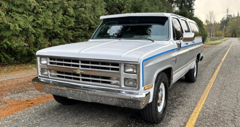 Cet 1988 Chevrolet Squarebody Suburban 3/4 Ton dispose d'un moteur 454 TBI Big Block avec transmission automatique. Il possède des portes arrière de barn, des verrous de portes manuels et une double échappement personnalisé équipé de silencieuse Flow Master 40 Series. Le véhicule présente un corps en parfait état, sans corrosion et une carrosserie impeccable. L'essieu arrière, les planchers et les plats internes des carrosseries ont l'aspect d'être inédits. Les pneus ont été changés en 2023 et ont peu circulé depuis. Le véhicule fonctionne, court et manœuvre comme un rêve. La plupart des pièces interieures sont dans un état proche de l'immaculat. Le panneau d'instrument a quelques fissures usuelles. Le véhicule a été transporté au Canada depuis un concessionnaire en Oregon en février 2021. Il a été utilisé exclusivement en été depuis. Il a également participé à plusieurs productions cinématographiques à Vancouver, BC, Canada et n'a jamais été poussé à ses limites sur écran. L'intérieur est presque parfait et immaculé. Le panneau d'instrument présente quelques fissures normales. Les photos ne montrent pas la main courante, elle a été réparée et réinstallée. Le vendeur a déclaré que l'acheteur l'a échangé uniquement pour utiliser le véhicule pour transporter sa voiture de course. Les informations sur ce véhicule sont fournies en bonne foi et sont croyables au moment de la mise en vente. Cependant, les informations sont sujettes à vérification par l'acheteur. Le vendeur n'assume pas de responsabilité pour les erreurs, omissions ou imprécisions. Les acheteurs sont encouragés à effectuer une inspection sur place ou à demander une évaluation de troisième parti avant toute transaction.. Ce descriptif est basé sur les éléments communiqués par le propriétaire avec un traitement assisté. Merci pour votre indulgence en cas de formulation perfectible. Provenance : British Columbia. Disponibilité : 7 semaines, clés en main. 21 000 € tout compris (importation, taxes, procédure d'immatriculation). Annonce publiée le 16/11/2025