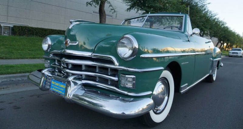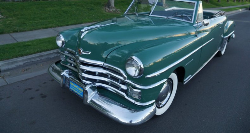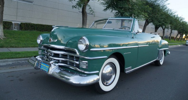 - Marque : Chrysler - Modèle : C-48 Windsor Convertible (1950) - Couleur extérieure : Vert - Couleur intérieure : Vert - Type de carrosserie : Cabriolet - Transmission : Automatique - Moteur : 251 CID 6 cylindres - Kilométrage : 20 474 miles - Travaux : Moteur et transmission reconstruits récemment, peinte récemment en peinture originale, nouvel upholstery vert - État : Très bon état, très peu de signes d'usure pour son âge, sans dommages d'accident, garée dans un garage - Travaux supplémentaires : Radio originale, chauffage/défroster, horloge électrique, lave-glace, pneus blancs, jantes complètes, coussin dos rabattable arrière, signaux directionnels, toit cabriolet - Condition : Véhicule presque entièrement original et non restauré - Vendeur : West Coast Classics (Californie). Provenance : California. Disponibilité : environ 7 semaines, clés en main. 35 000 € tout compris (importation, taxes, procédure d'immatriculation). Annonce publiée le 05/12/2025
