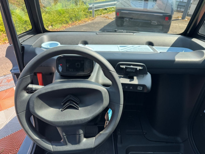 PACK BLEU CIEL (Enjoliveurs,Autocollants,Tapis,Stickers) / Moteur 6kW / Autonomie WMTC 75km / Temps de Recharge prise secteur classique 4h / AMI vous offre un habitacle fermé, chauffé et lumineux, où 2 personnes (1 personne pour MY AMI CARGO) s'installent aisément côte à côte. Côté pratique, un grand espace de 63L est présent devant le passager pouvant accueillir un bagage cabine et de nombreux rangements sont à votre disposition