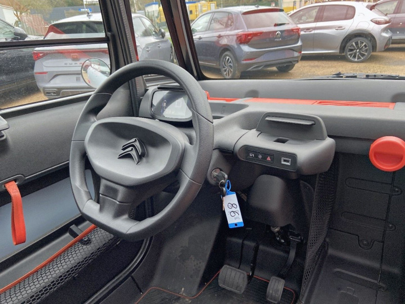 Moteur 6kW / Autonomie WMTC 75km / Temps de Recharge prise secteur classique 4h / AMI vous offre un habitacle fermé, chauffé et lumineux, où 2 personnes (1 personne pour MY AMI CARGO) s'installent aisément côte à côte. Côté pratique, un grand espace de 63L est présent devant le passager pouvant accueillir un bagage cabine et de nombreux rangements sont à votre disposition / PACK ORANGE (Enjoliveurs,Autocollants,Tapis,Stickers) / Bequet Sport