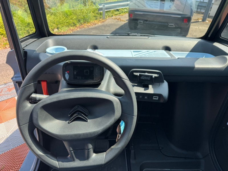Moteur 6kW / Autonomie WMTC 75km / Temps de Recharge prise secteur classique 4h / AMI vous offre un habitacle fermé, chauffé et lumineux, où 2 personnes (1 personne pour MY AMI CARGO) s'installent aisément côte à côte. Côté pratique, un grand espace de 63L est présent devant le passager pouvant accueillir un bagage cabine et de nombreux rangements sont à votre disposition / PACK BLEU CIEL (Enjoliveurs,Autocollants,Tapis,Stickers)