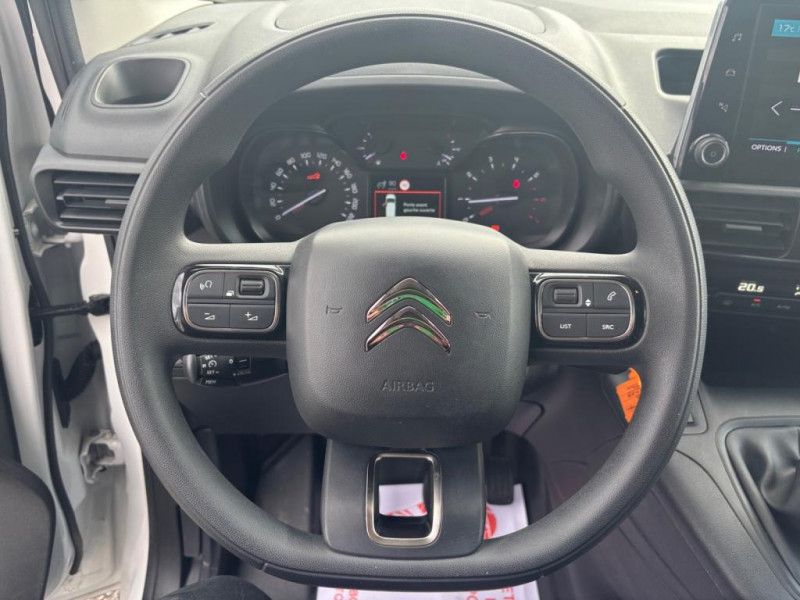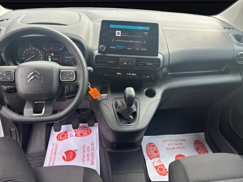 screen et radio numérique dab / Système audio mp3 (2 hp + 2 tweeters) dab / Cloison pleine fixe / Jantes tôle 15" grises avec cabochon / Citroën connect box avec pack sos et assistance inclus / 6 anneaux d?arrimage au sol dans la zone de chargement / Abs, afu, asr et esp / Boîte à gants top box / Capucine / Détection de sous-gonflage / Essuie-vitres av magic wash / Frein de stationnement électrique / Garnissage tissu mica grey / Portes ar battantes 60/40 tôlées avec ouverture à 180° / Prise 12v sur planche de bord / Siège conducteur confort (avec accoudoir, réglage en hauteur,