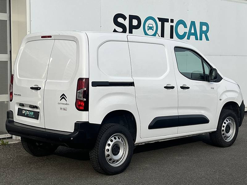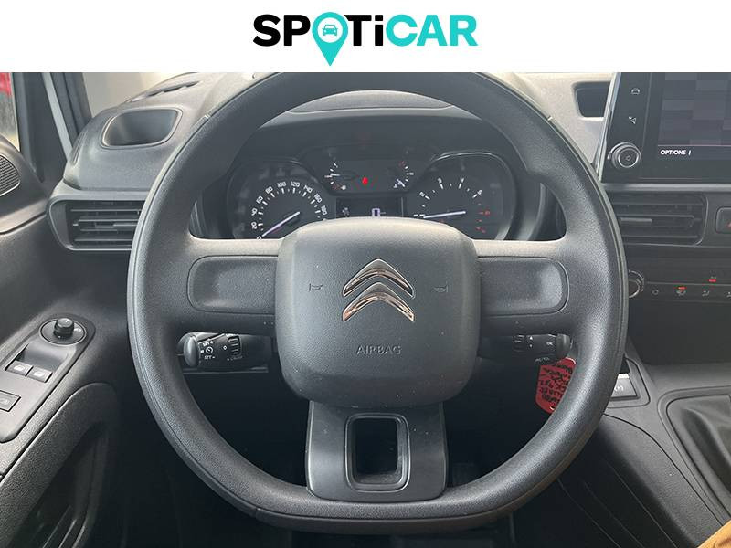 6 anneaux d'arrimage au sol dans la zone de chargement / ABS, AFU, ASR et ESP (ESC amélioré avec assistance en cas de vent latéral, contrôle de stabilité de la remorque, et freinage après collision) / Boîte à gants Top Box / Capucine / Citroën Connect Box avec Pack SOS et assistance inclus / Cloison pleine fixe / Détection de sous-gonflage / Frein de stationnement électrique / Garnissage Tissu Mica Grey / Jantes tôle 16" grises avec cabochon / Portes AR battantes 60/40 avec ouverture a 180° / Prise 12V sur planche de bord / Revêtement de sol en TPO dans l'habitacle / Siège conducteur confort (avec accoudoir, réglage en hauteur, réglage lombaire et rangement sous siège) / Siège passager réglable / Système audio numérique (DAB) MP3 (2 HP + 2 tweeters) + Bluetooth / Teinte de caisse opaque Blanc Banquise