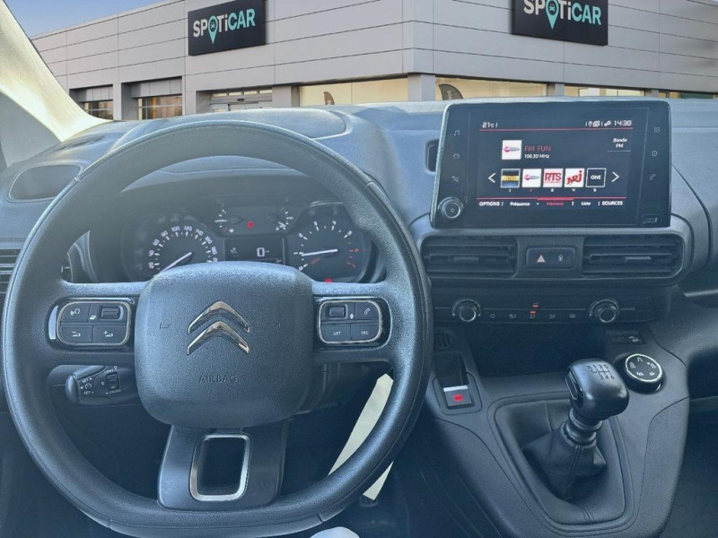 TVA récupérable / 6 anneaux d'arrimage au sol dans la zone de chargement / AFU / ASR et ESP / Boite à gants Top Box fermée / Boite à gants ouverte en partie basse / Capucine / Citroën Connect Box avec Pack SOS et assistance inclus / Cloison pleine fixe / Condamnation centralisée avec PLIP 3 boutons+1 clé / Détection de sous-gonflage / Essuie-vitres AV Magic Wash / Frein de stationnement électrique / Garnissage Tissu Mica Grey / Jantes tôle 15p grises avec cabochon / Portes AR battantes 60/40 tôlées avec ouverture à 180° / Prise 12V sur planche de bord / Revêtement de sol en TPO dans l'habitacle / Rétroviseurs extérieurs électriques et chauffants / Siège conducteur confort (avec accoudoir / réglage lombaire et rangement / Siège passager fixe avec grand rangement sous assise basculante / Système Stop & Start / Système audio MP3 (2HP + 2 tweeters) numérique / Système audio MP3 (2HP + 2 tweeters) numérique DAB