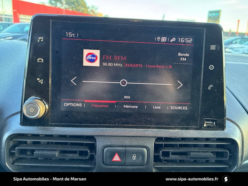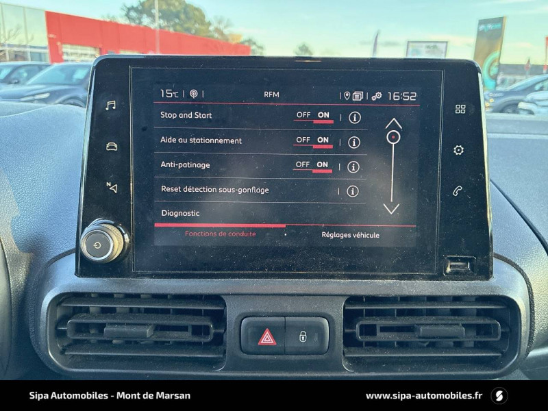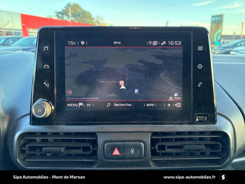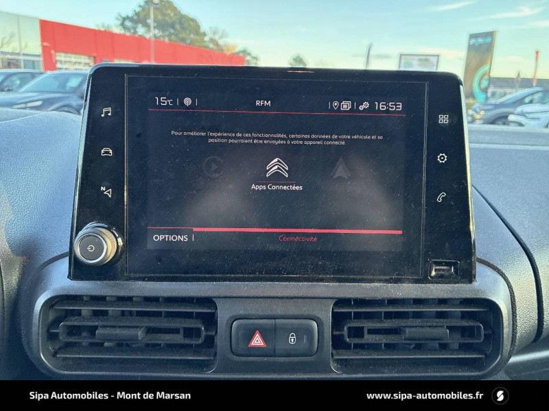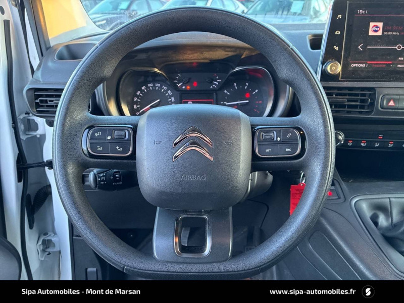 6 anneaux d'arrimage au sol dans la zone de chargement / ABS, AFU, ASR et ESP (ESC amélioré avec assistance en cas de vent latéral, contrôle de stabilité de la remorque, et freinage après collision) / Boite à gants Top Box fermée / Boite à gants ouverte en partie basse / Capucine / Citroën Connect Box avec Pack SOS et assistance inclus / Citroën Connect Nav sur tablette tactile 8" avec fonction Mirror Screen et radio numérique DAB / Cloison pleine fixe / Détection de sous-gonflage / Frein de stationnement électrique / Garnissage Tissu Mica Grey / Jantes tôle 16" grises avec cabochon / Portes AR battantes 60/40 tôlées avec ouverture à 180° / Prise 12V sur planche de bord / Siège conducteur confort (avec accoudoir, réglage en hauteur, réglage lombaire et rangement sous siège) / Siège passager fixe avec grand rangement sous assise basculante / Surround Rear Vision et rétroviseurs rabattables électriquement Comprend l'aide au stationnement AV et AR, la caméra de recul, et la surveillance de l'environnement AR et latéral passager avec restitution sur un écran 5'' dédiéà la place du rétroviseur intérieur / Système audio MP3 (2HP + 2 tweeters) numérique DAB