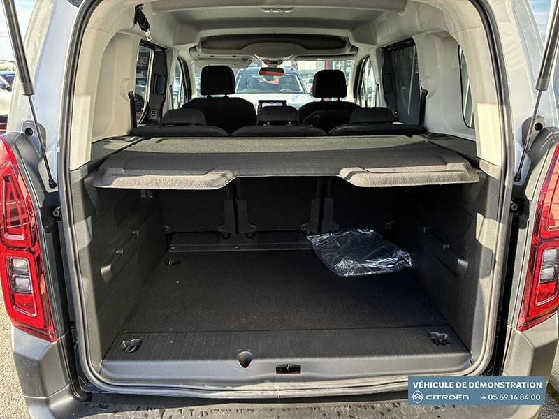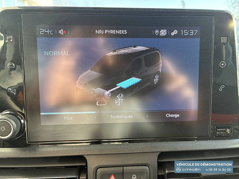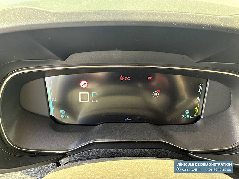 3 sièges rang 2 indépendants escamotables avec fixation Isofix / ABS, AFU, ESP, ESC, ASR / Banquette rang 2 escamotable 2/3 - 1/3 avec fixation Isofix / Barres de toit longitudinales Noir Brillant / Câble de recharge Wallbox 7,4kW monophasé Mode 3 pour prise Type 2 / Caméra de recul avec Top Rear Vision / Chargeur embarqué 7kW (AC) / 100kW (DC) / Combiné numérique couleur 10" / Coques de rétroviseurs noires vernies / Détecteur de sous-gonflage / Essuie-vitre AV automatique (capteur de pluie) / Essuie-vitre AV Magic Wash / Frein de stationnement électrique / Jantes alliage 16" avec pneumatiques 205/60 R16 92H / Lève-vitres AV et AR (rang 2) électriques et séquentiels / Lunette AR ouvrante surteintée / Pack Color Blue Anodised / Pack Safety - Active Safety Brake (Freinage automatique d'urgence) - Alerte active de Franchissement Involontaire de Ligne - Alerte Attention Conducteur - Reconnaissance des panneaux de signalisation - Régulateur-limiteur de vitesse / Pack Safety Plus / Pavillon avec capucine / Poignées de portes extérieures couleur caisse / Porte latérale coulissante gauche vitrée entrebaillante / Prise 12V en rang 2 / Radio numérique (DAB) (2 HP + 2 tweeters) avec écran tactile monochrome 5" et Kit mains libres Bluetooth / Radio sur tablette tactile couleur 8'', compatible Android Auto et Apple Car Play TM / Rangements : Boîte a gants inférieure fermée côté passager, Rangement fermé derriere le combiné conducteur / Rétroviseur intérieur électrochrome / Sécurité enfants électrique / Siège conducteur avec réglage lombaire et accoudoir / Siège passager AV rabattable avec accoudoir / Surteintage des vitrages ( Rang 2, Rang 3) / Tablette AR cache-bagages à 2 positions / Tablettes aviation au dos des sièges AV / Vitres du rang 3 fixes / Vitres entrebaillantes en rang 2 / Volet AR avec vitre fixe, dégivrage et essuie-vitre