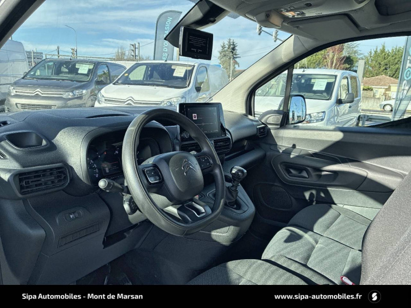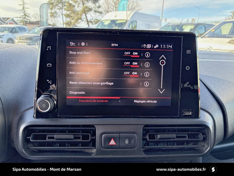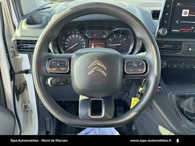 6 anneaux d'arrimage au sol dans la zone de chargement / ABS, AFU, ASR et ESP (ESC amélioré avec assistance en cas de vent latéral, contrôle de stabilité de la remorque, et freinage après collision) / Boite à gants Top Box fermée / Boite à gants ouverte en partie basse / Capucine / Citroën Connect Nav sur tablette tactile 8" avec fonction Mirror Screen et radio numérique DAB / Cloison pleine fixe / Détection de sous-gonflage / Frein de stationnement électrique / Garnissage Tissu Mica Grey / Jantes tôle 15" grises avec cabochon / Portes AR battantes 60/40 tôlées avec ouverture à 180° / Prise 12V sur planche de bord / Rangement côté passager Boîte à gants fermée et réfrigérée en partie haute,Boîte à gant ouverte en partie basse. / Revêtement de sol en moquette dans l'habitacle / Siège conducteur confort (avec accoudoir, réglage en hauteur, réglage lombaire et rangement sous siège) / Siège passager fixe avec grand rangement sous assise basculante / Surround Rear Vision et rétroviseurs rabattables électriquement Comprend l'aide au stationnement AV et AR, la caméra de recul, et la surveillance de l'environnement AR et latéral passager avec restitution sur un écran 5'' dédiéà la place du rétroviseur intérieur / Système audio MP3 (2HP + 2 tweeters) numérique DAB