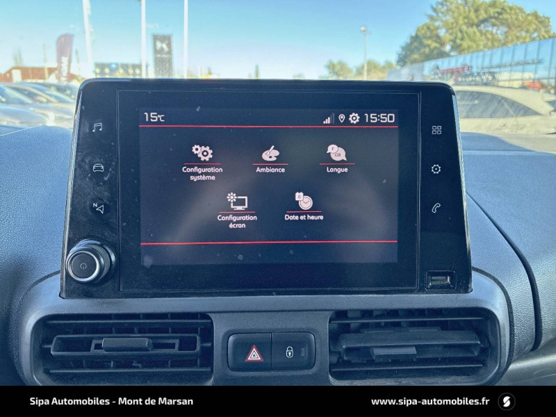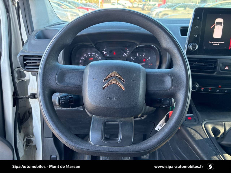 6 anneaux d'arrimage au sol dans la zone de chargement / ABS, AFU, ASR et ESP (ESC amélioré avec assistance en cas de vent latéral, contrôle de stabilité de la remorque, et freinage après collision) / Banquette 2 places, place centrale avec dossier rabattable et tablette écritoire orientable, rangement sous siège central, place latérale escamotable pour charge longue / Boîte à gants Top Box / Cabine Extenso / Capucine / Citroën Connect Box avec Pack SOS et assistance inclus / Cloison pleine fixe / Détection de sous-gonflage / Essuie-vitres AV Magic Wash / Frein de stationnement électrique / Garnissage Tissu Mica Grey / Pack Chantier avec système Grip Control Tôle de protection sous moteur et réhausse de +30 mm, Roue de secours (jante tôle) 215/65 R16 96H, Jantes tôle avec pneumatiques 215/65 R16 102H XL - 3PMSF Pneus 4 saisons, Système Grip Control avec Hill Assist Descent / Pack Zone de chargement / Portes AR battantes 60/40 tôlées avec ouverture à 180° / Prise 12V sur planche de bord / Revêtement de sol en TPO dans l'habitacle / Siège conducteur confort (avec accoudoir, réglage en hauteur, réglage lombaire et rangement sous siège) / Siège passager fixe avec grand rangement sous assise basculante / Système audio MP3 (2 HP + 2 tweeters) DAB