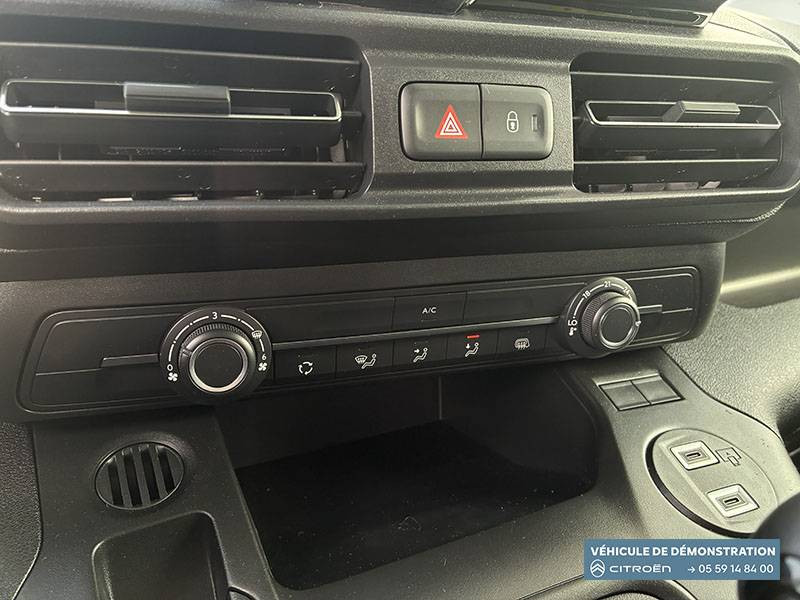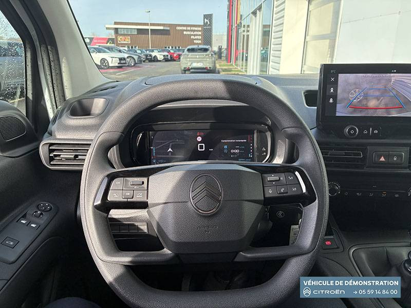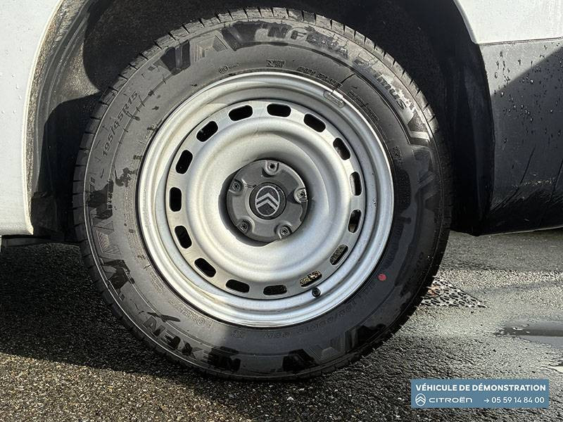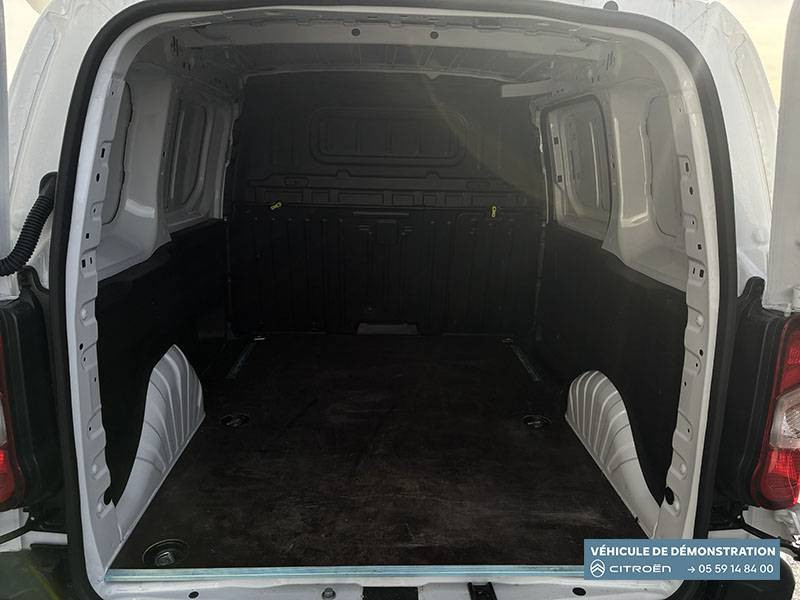 6 anneaux d'arrimage au sol dans la zone de chargement / Airbags conducteur et passager: frontaux, latéraux et rideaux / Boîte manuelle 6 vitesses / Capucine / Cloison pleine fixe / Commutation automatique des feux de route / Connect Box avec Pack SOS et assistance inclus / Contrôle de traction (TCS) / Côté passager: Boîte à gants fermée et réfrigérée en partie haute, Boîte à gant ouverte en partie basse / Détection de sous-gonflage / Essuie-vitres AV Magic Wash / Garnissage Tissus Curitiba Triton Meltem / Jantes tôle 15" grises avec pneumatiques 195/65 R15 90U / Kit de dépannage provisoire de pneumatiques / Pack Safety Alerte risque collision & Freinage d'urgence, Lecture des panneaux de vitesse, Détection & Alerte somnolence, Alerte franchissement de ligne avec correction / Portes AR battantes 60/40 tôlées avec ouverture à 180° / Preventive Maintenance (abonnement 4 ans inclus) Tableau de bord de la flotte, Alertes sur l'état du véhicule, Suivi de la maintenance (& calendrier), Envoi de rapports périodiques / Prise 12V sur planche de bord / Revêtement de sol en moquette dans l'habitacle / Siège conducteur avec réglage en longueur et dossier inclinable / Siège passager individuel réglable en inclinaison, appuis tête réglable en hauteur / Station d'accueil Smartphone, application radio avec streaming audio (2HP), Kit mains libres Bluetooth, 2 prises USB Type C (charge uniquement)