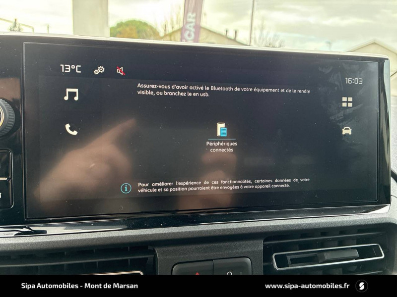 6 anneaux d'arrimage au sol dans la zone de chargement / ABS, AFU, ASR et ESP (ESC amélioré avec assistance en cas de vent latéral, contrôle de stabilité de la remorque, et freinage après collision) / Boîte à gant ouverte en partie basse côté passager / Boîte à gants fermée et réfrigérée en partie haute côté passager / Capucine / Cloison pleine fixe / Détection de sous-gonflage / Garnissage Tissus Curitiba Triton Meltem / Jantes en tôle 16" grises avec cabochon / Kit de dépannage provisoire de pneumatiques / Pack Visibilité / Pneumatiques 205/60 R16 / Portes AR battantes 60/40 tôlées avec ouverture à 180° / Prise 12V sur planche de bord / Rangement fermé derrière le combiné côté conducteur / Revêtement de sol en moquette dans l'habitacle / Siège conducteur avec réglage en hauteur, réglagle lombaire et accoudoir / Siège passager fixe avec grand rangement sous assise basculante / Système audio MP3 (2HP + 2 tweeters) numérique DAB avec écran tactile monochrome 5''