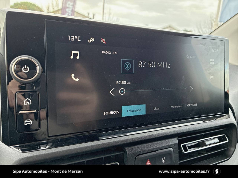 6 anneaux d'arrimage au sol dans la zone de chargement / ABS, AFU, ASR et ESP (ESC amélioré avec assistance en cas de vent latéral, contrôle de stabilité de la remorque, et freinage après collision) / Boîte à gant ouverte en partie basse côté passager / Boîte à gants fermée et réfrigérée en partie haute côté passager / Capucine / Cloison pleine fixe / Détection de sous-gonflage / Garnissage Tissus Curitiba Triton Meltem / Jantes en tôle 16" grises avec cabochon / Kit de dépannage provisoire de pneumatiques / Pack Visibilité / Pneumatiques 205/60 R16 / Portes AR battantes 60/40 tôlées avec ouverture à 180° / Prise 12V sur planche de bord / Rangement fermé derrière le combiné côté conducteur / Revêtement de sol en moquette dans l'habitacle / Siège conducteur avec réglage en hauteur, réglagle lombaire et accoudoir / Siège passager fixe avec grand rangement sous assise basculante / Système audio MP3 (2HP + 2 tweeters) numérique DAB avec écran tactile monochrome 5''