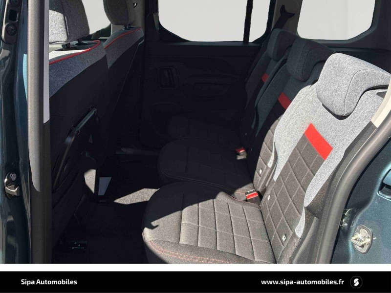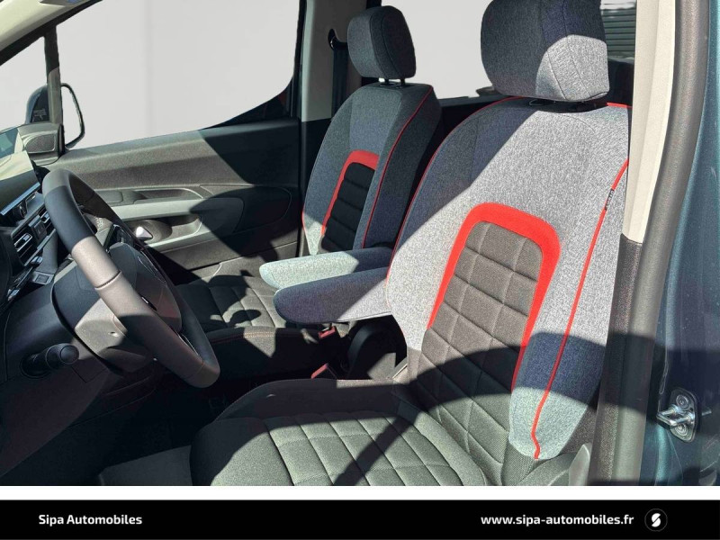 3 sièges individuels en rang 2, escamotables avec fixation Isofix / ABS, AFU, ESP, ESC, ASR / Airbags frontaux conducteurs et passager AV, latéraux AV et rideaux / Allumage automatique des feux de croisement et commutation automatique en feux de route / Barre de toit longitudinales Noir Mat / Boîte manuelle 6 rapports / Caméra de recul avec Top Rear Vision / Citroën Connect SOS & assistance / Combiné numérique couleur 10" / Coques de rétroviseurs extérieurs noires vernies / Détecteur de sous-gonflage / Feux EcoLED : feux de route et feux de croisement / Frein de stationnement électrique / Garnissage tissu Ambiance Urban Grey / Jantes alliage 16" avec pneumatiques 205/60/R16 96H / Lève-vitres AV et rang 2 électriques et séquentiels / Lunette AR ouvrante et surteintée / Pavillon avec capucine / Poignées de portes extérieures noires vernies / Radio numérique DAB avec écran tactile couleur personnalisable 10'' SD, Bluetooth, Mirror Screen sans fil (Android Auto et Apple CarPlay), tableau de bord numérique couleur de 10'' SD, Mirroring Wifi, reconnaissance vocale pour smartphone (1 connectable), 1 port USB de type C pour les données, 1 port USB de type C pour la charge / Rangement fermé derrière le combiné conducteur / Rangements côté passager: Boîte à gants Top Box réfrigérée, Boîte à gants inférieure fermée / Sécurité enfants électrique / Siège conducteur avec réglage lombaire et accoudoir / Siège passager AV rabattable avec accoudoir / Signature lumineuse à LED / Surteintage des vitrages ( Rang 2, Rang 3) / Tablette AR cache-bagages à 2 positions / Tablette aviation au dos des sièges AV / Teinte de caisse opaque / Vitres du rang 3 fixes / Vitres rang 2 coulissantes / Volet AR avec vitre fixe, dégivrage et essuie-vitre